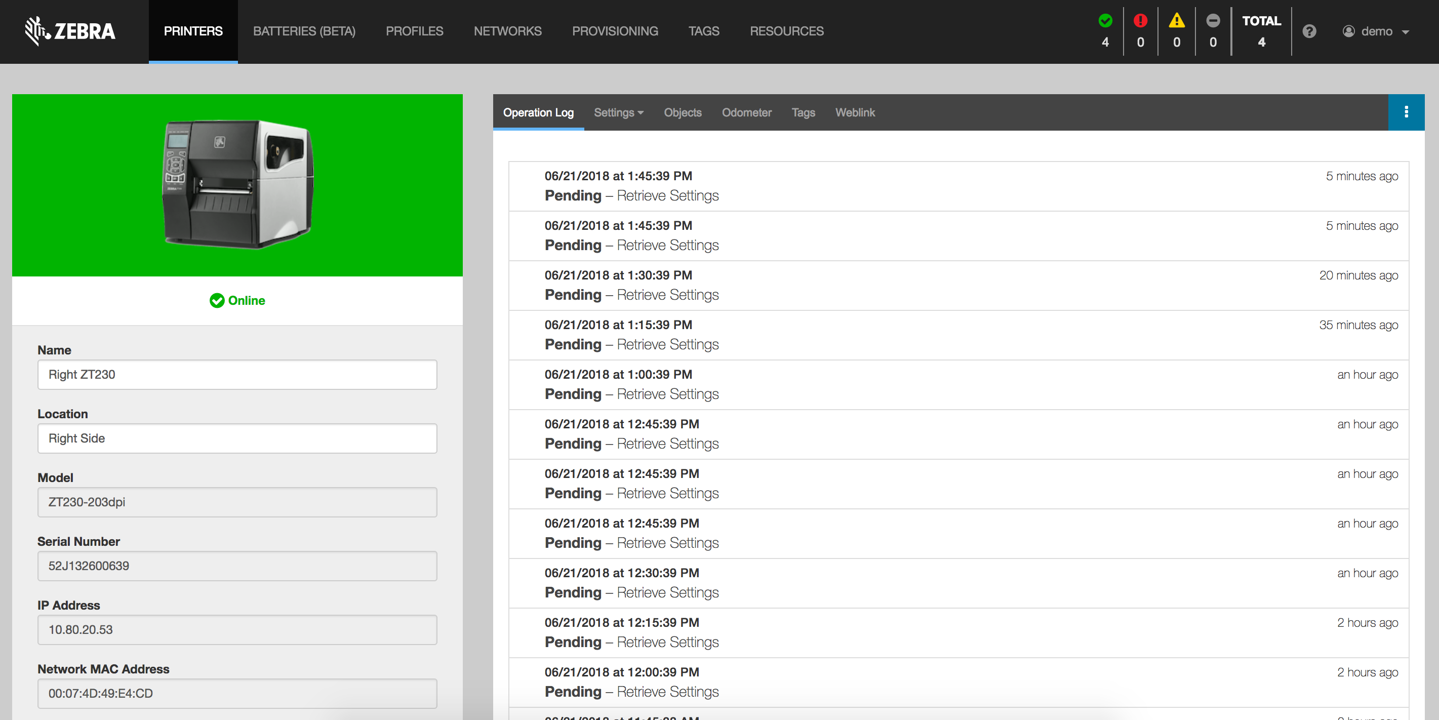 Операционная система Zebra Link-OS, установленная в устройства, значительно упрощает процесс централизованного управления принтерами с одной удаленной станции. Причем речь идет не только о локальной сети, но и администрировании печатающих устройств через Интернет с помощью веб-интерфейса.