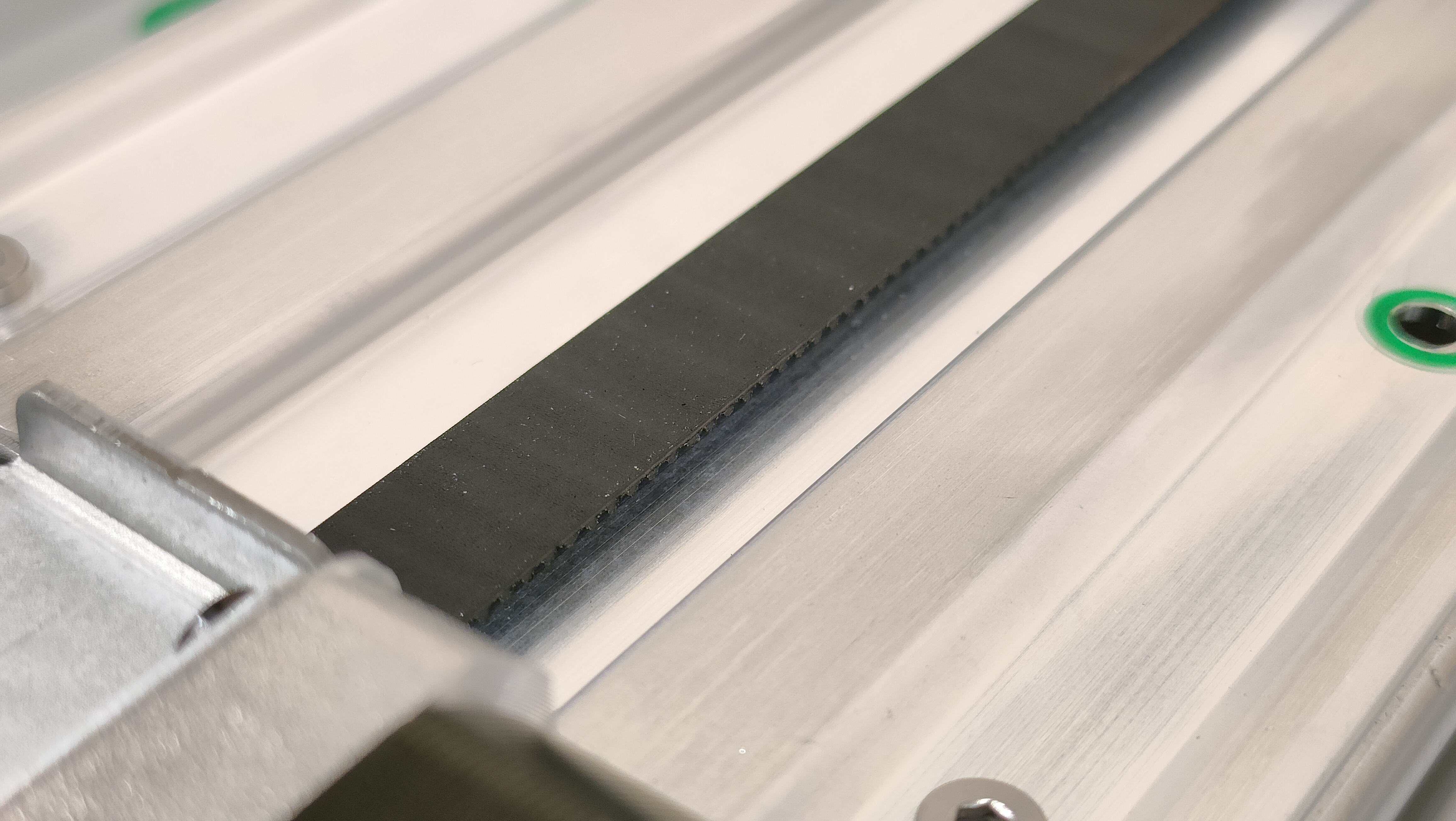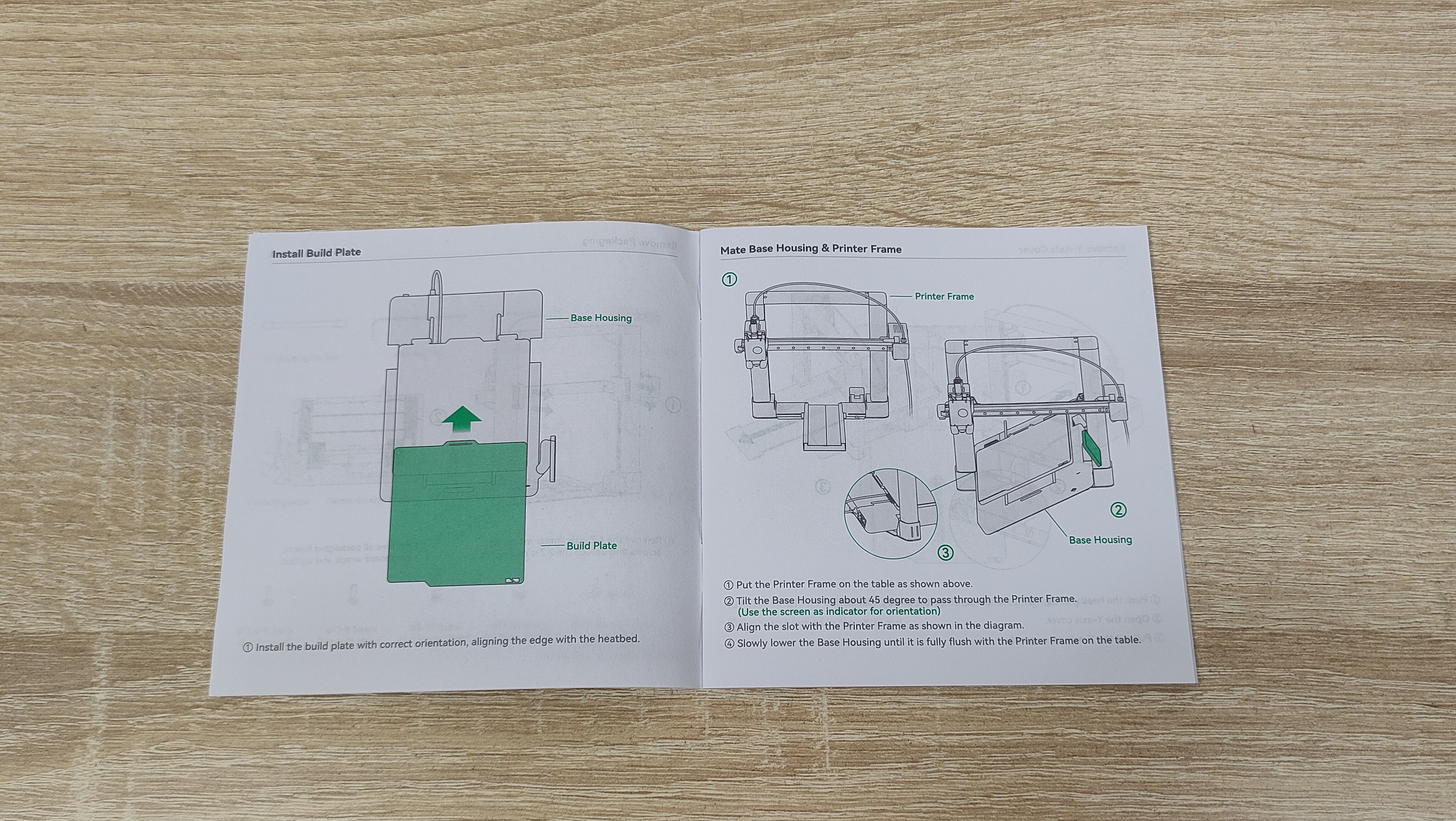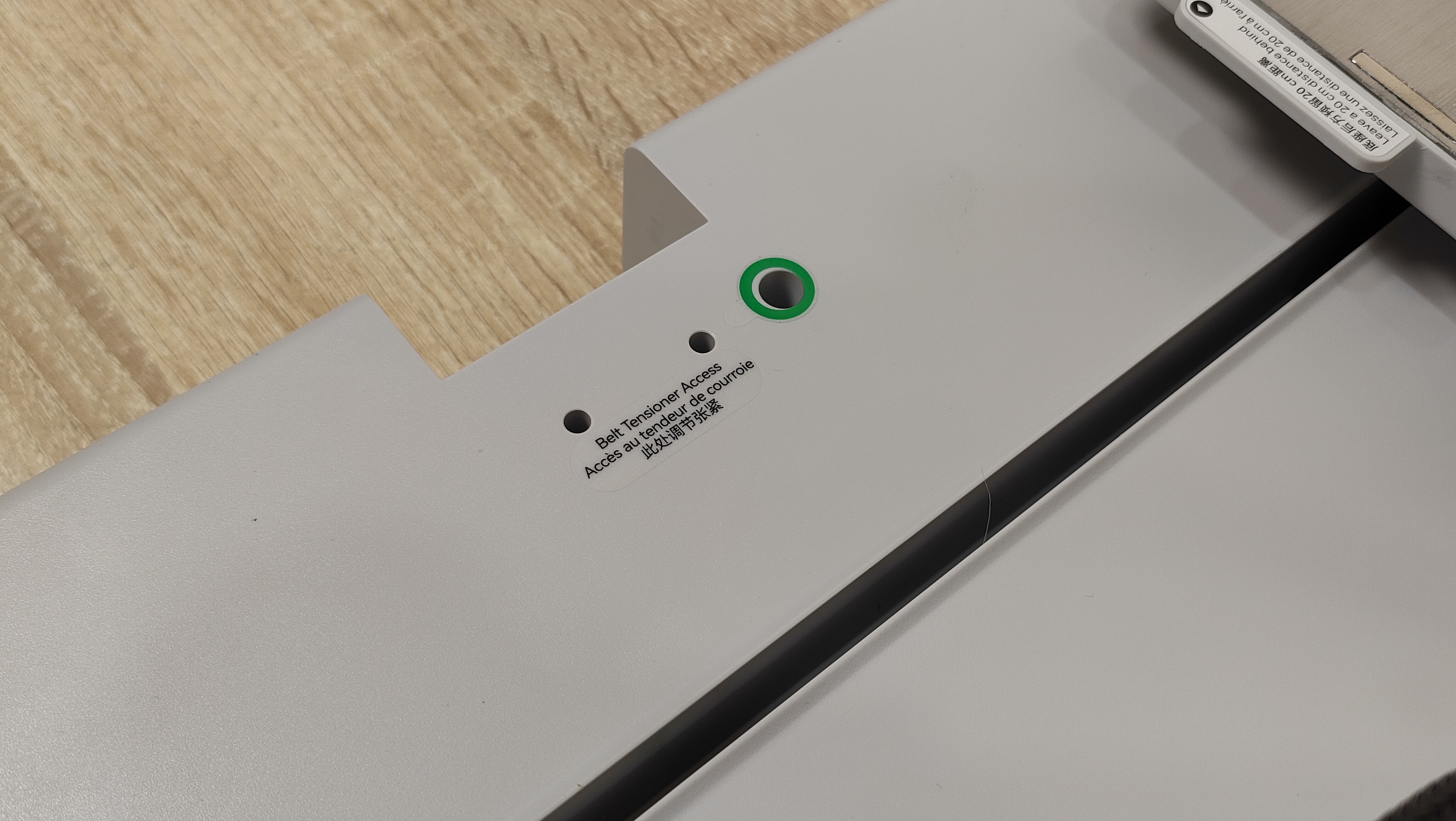 На этом этапе нужно продеть стол в раму и закрепить его комплектными винтами, которые указаны в руководстве определённым номером и этим же номером помечены на пакете. Для этой процедуры нужно будет сдвинуть стол и снять защитную крышку. Все места, куда необходимо вкрутить винт обозначены зелёным кружком, правда в одном месте отверстие как будто не доделано, но я всё равно победил и вкрутил туда винт.