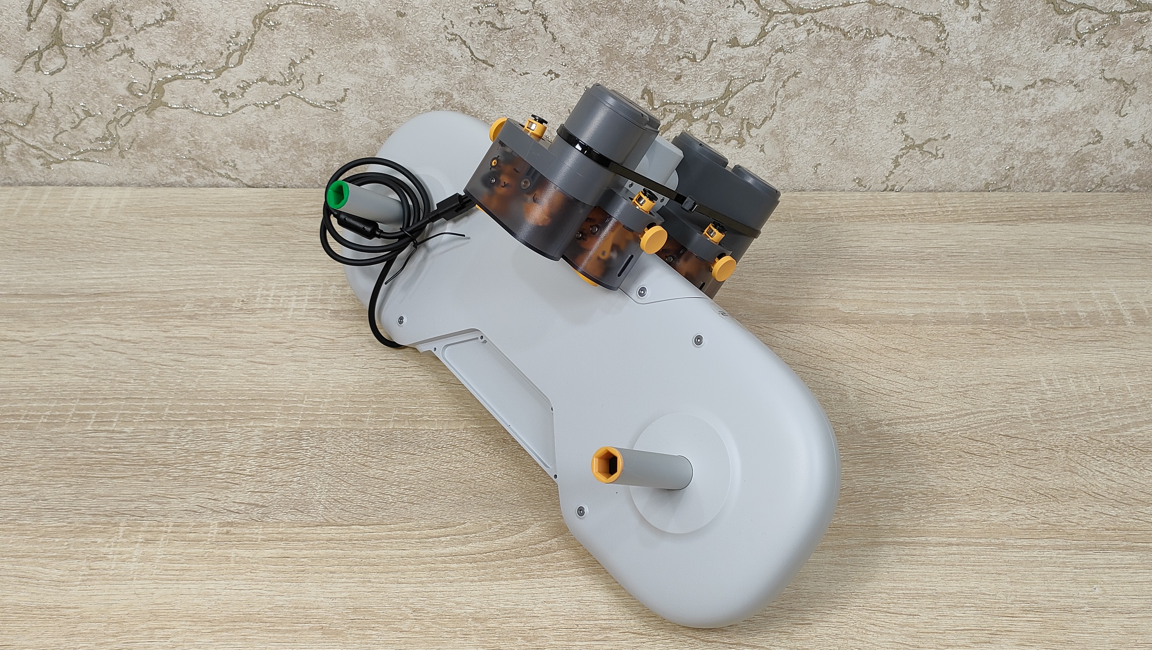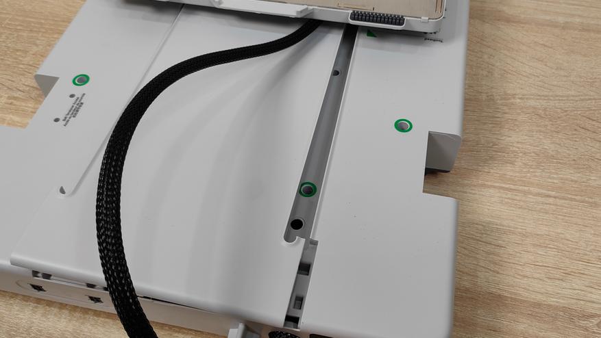 Далее нужно быть очень аккуратным и положить стол на «спину», соответственно подложив что-нибудь под раму. Это необходимо для того, чтобы подключить всю проводку которая там сосредоточена. Как-то ошибиться там проблематично, так как есть чёткая «цветовая дифференциация штанов» (c), а также определённый тип коннекторов. Ещё нужно быть аккуратным с USB Type-C разъёмом который подключается в неудобном месте и фиксируется винтом. Собственно всё, на этом сборка окончена и по факту она длится меньше, чем я всё это описывал, особенно при наличие электроотвертки с подходящей битой