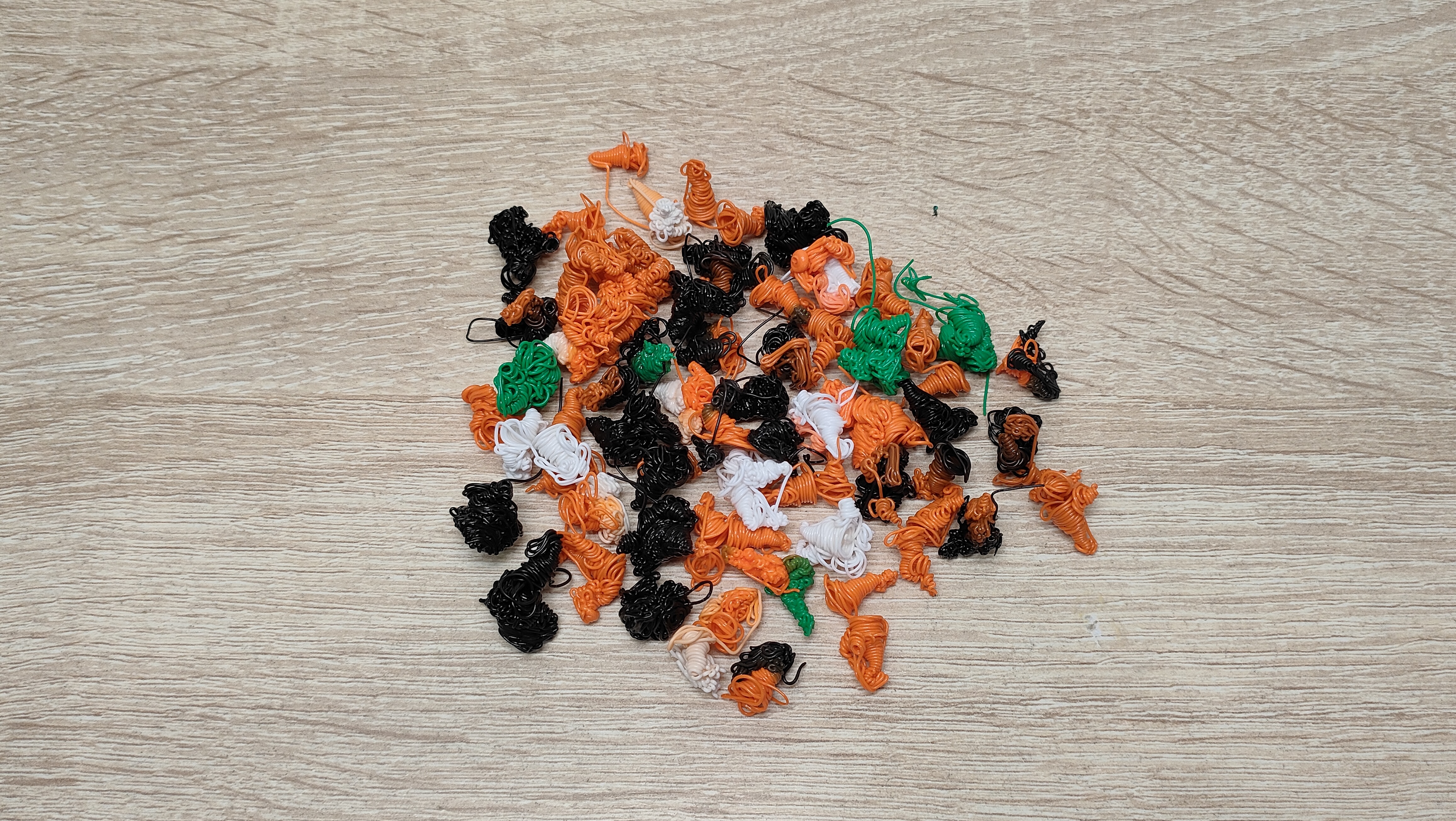 Кучка — часть результата прочистки самим принтером, как видно, расход не маленький при многоцветной печати, что следует учитывать. Соответственно, чем по мере печати будет меньше переходов от цвета к цвету, тем меньше будет и отходов. На фото справа, та самая черновая башня, которая и нужна для промывки системы без сброса за пределы стола, её можно выключить в слайсере, но я этого делать не стал, исключительно для демонстрации.