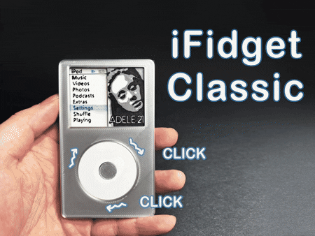 iFidget Classic воспроизводит ключевые элементы оригинального iPod, в частности, его знаменитое колесо прокрутки. Механизм устройства позволяет имитировать тактильные ощущения от использования настоящего iPod Classic — при вращении колеса пользователь чувствует характерные щелчки. Дизайн также включает имитацию экрана с интерфейсом меню, где при вращении диска происходит перемещение механической полоски выбора пунктов меню, аналогично тому, как это работало в оригинальном устройстве.