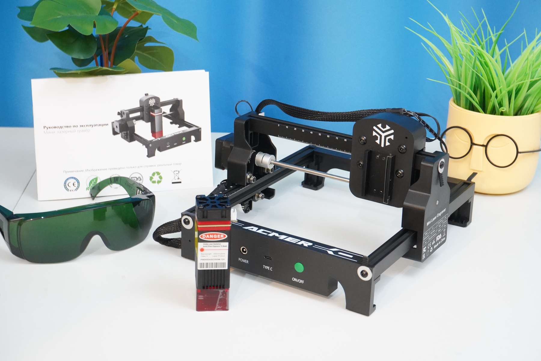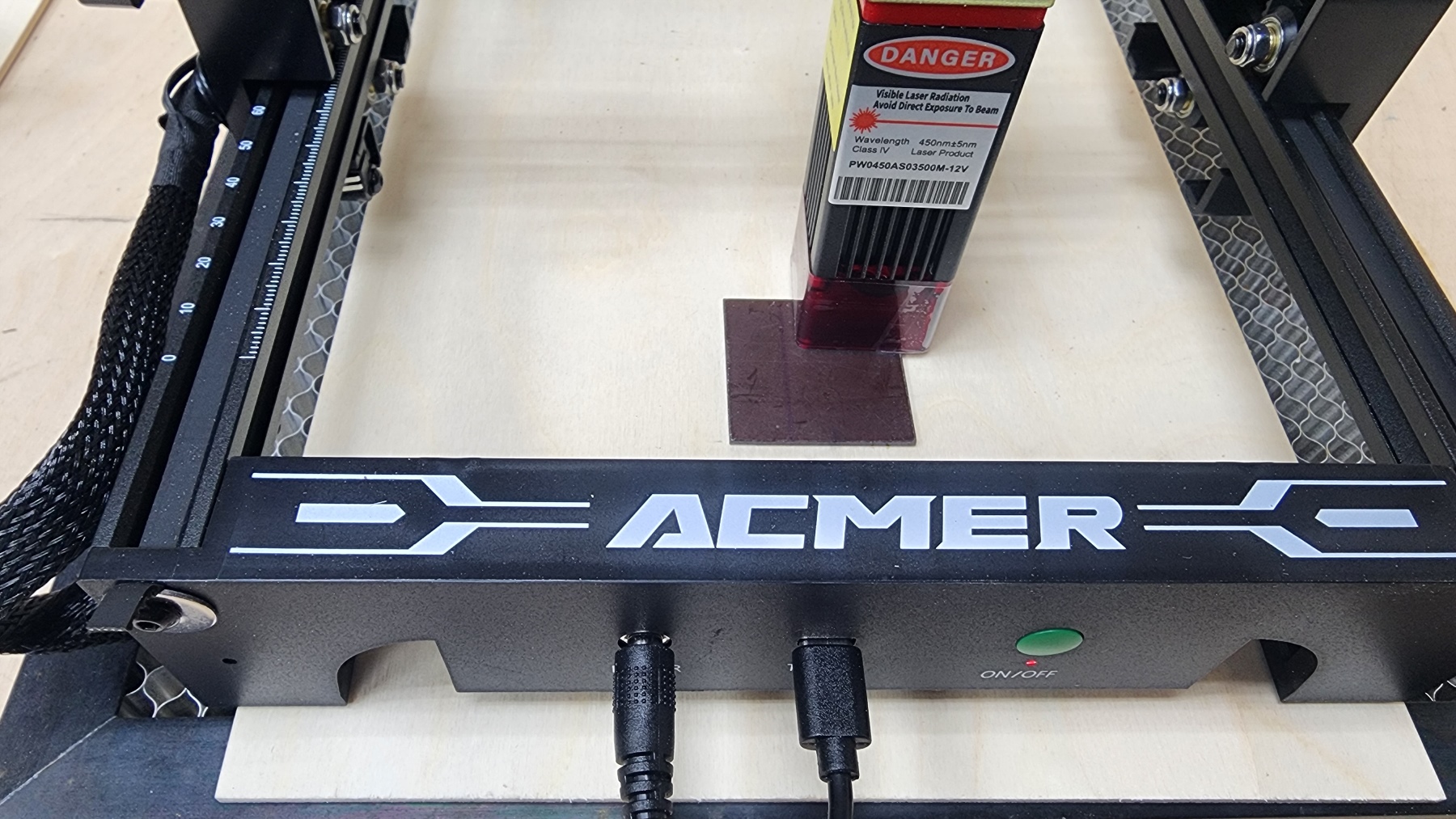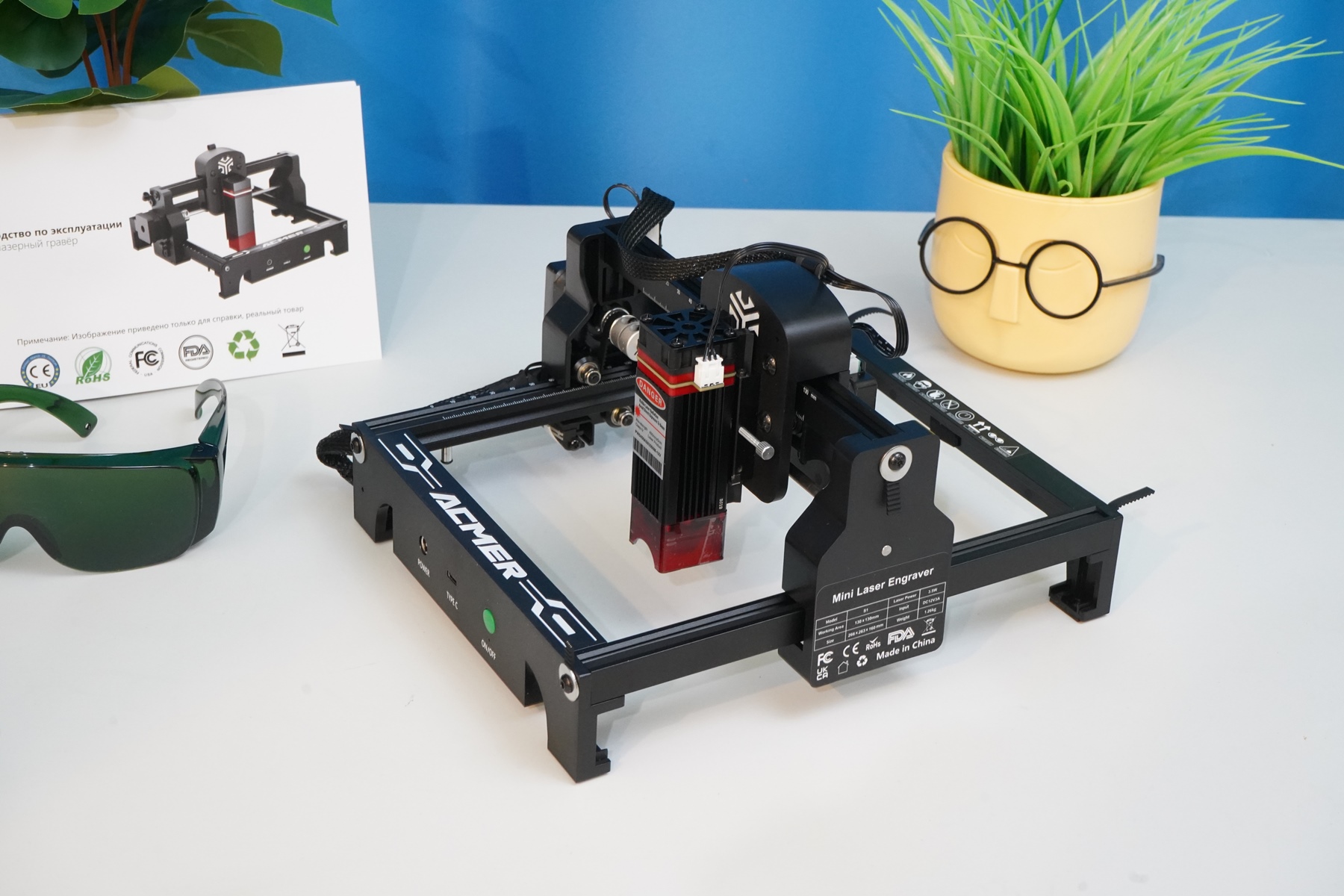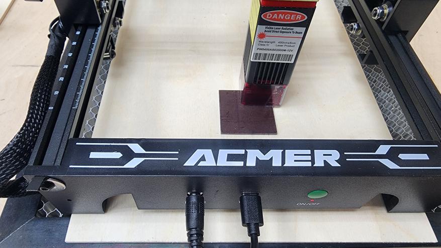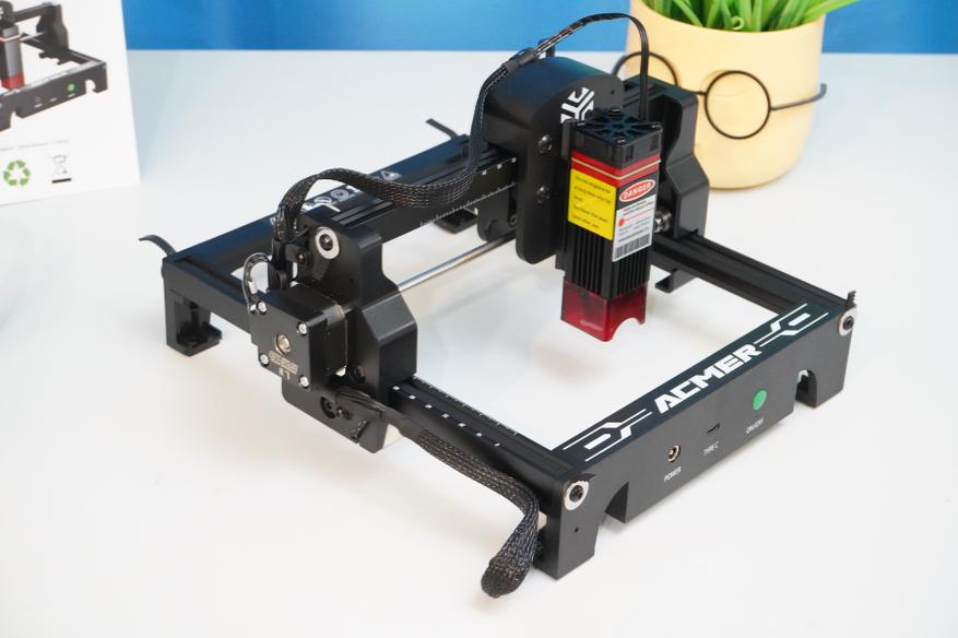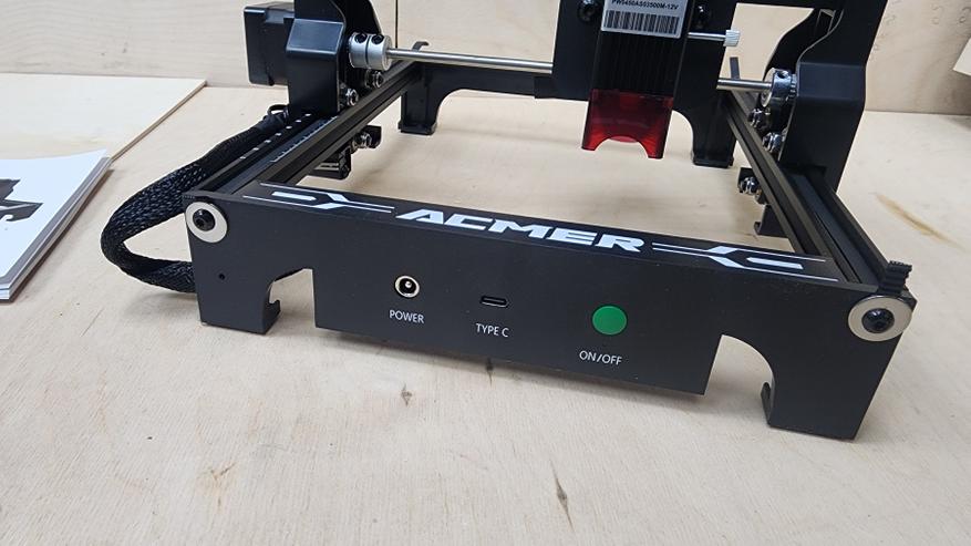 Вот так выглядит лазерный гравер ACMER S1 в сборе и готовый к работе. По большому счету, осталось подключить USB-C к компьютеру и запустить приложение для контроля/гравировки/резки.