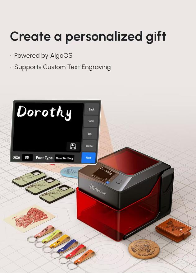 Лазерный гравер AlgoLaser Pixi работает на операционной системе AlgoOS и предназначен для гравировки текста и изображений. Устройство поддерживает создание персонализированных подарков и других проектов, требующих точной обработки материалов.