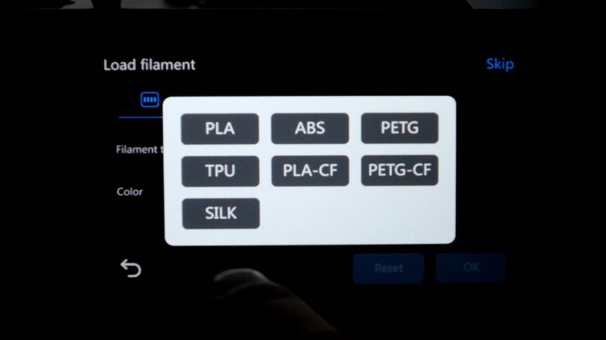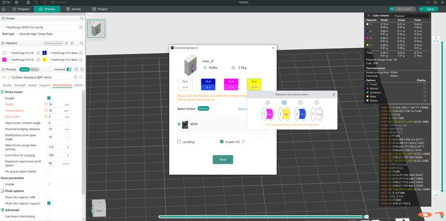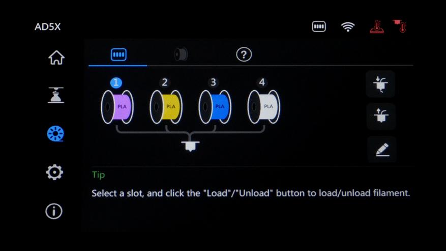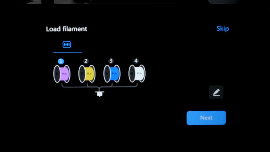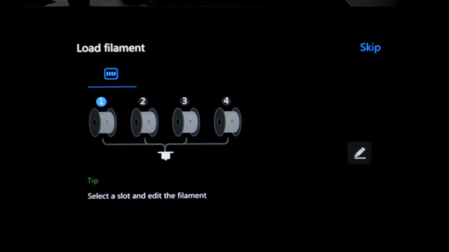 После калибровки нужно подготовить филамент и назначить тип с цветом для каждого слота.