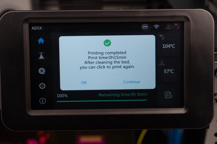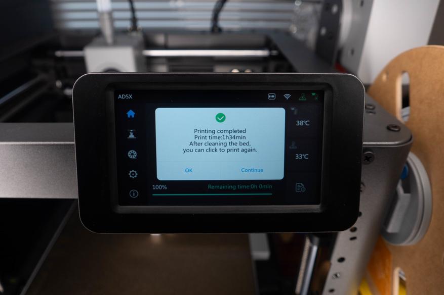 + Управлять принтером и мониторить его состояние можно как с помощью ПК, так и через мобильное приложение даже вне домашней сети, что довольно удобно, особенно учитывая сколько времени занимает печать крупных объектов с множеством разноцветных вставок. А так уведомление пришло и можно оперативнее отреагировать на проблему, либо закинуть еще что-нибудь.