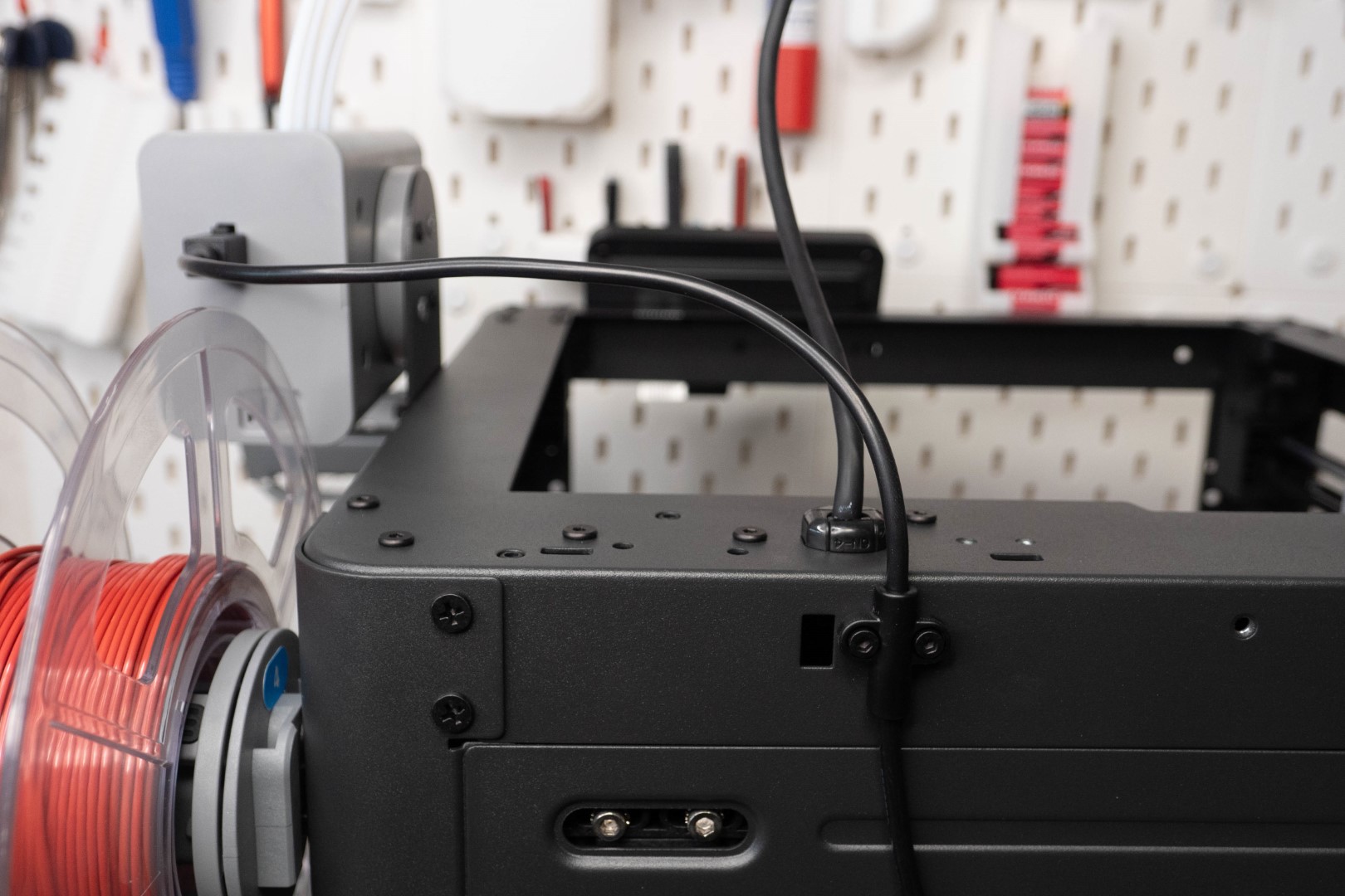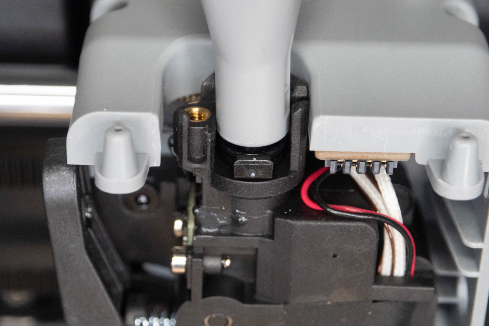 Главное не забыть подключить кабель. Постарайтесь зафиксировать верхнюю часть так, чтобы он не касался катушек во время печати.