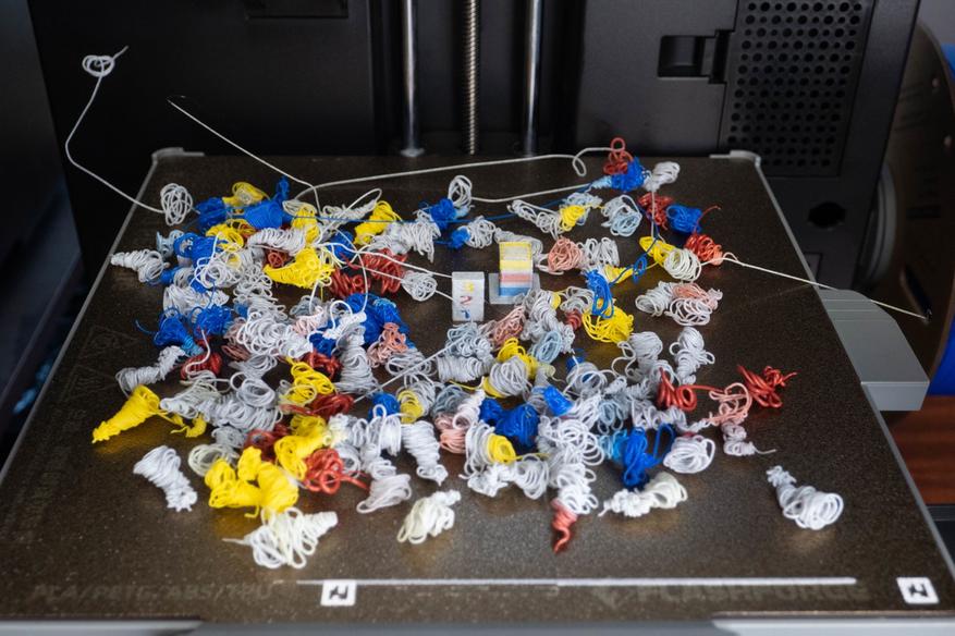 На вторую ушло полтора часа и за 48 циклов смены филамента накопилась такая кучка отходов.