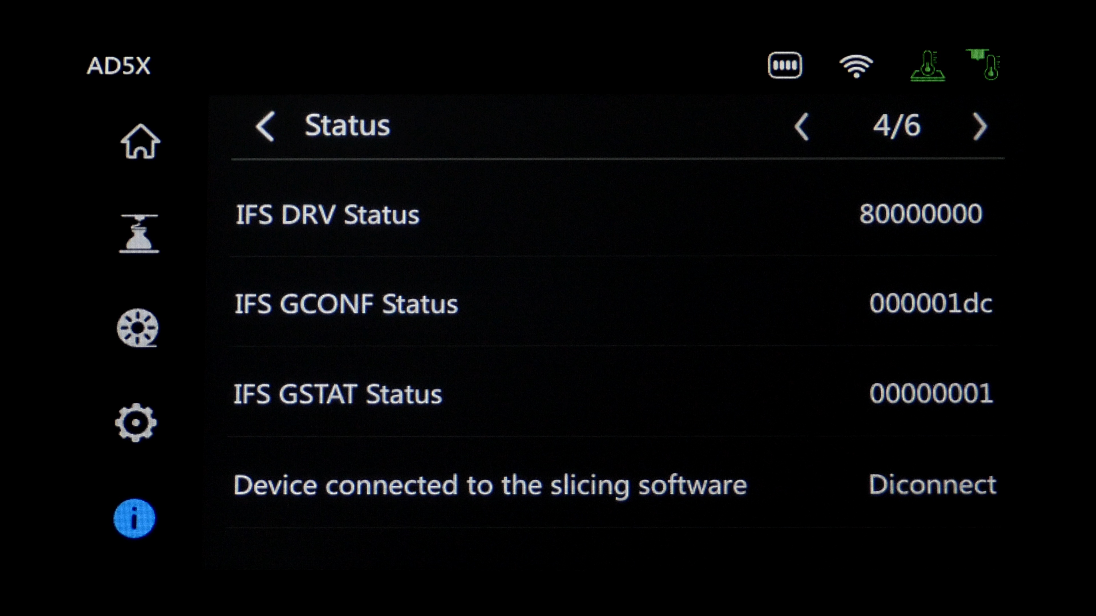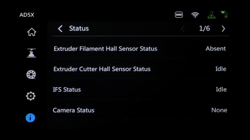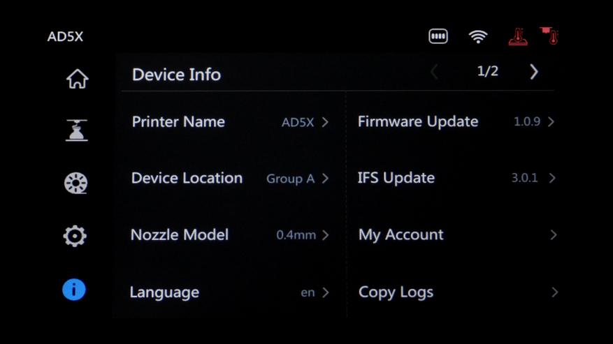 Ну и в последней меняется имя принтера, присваивается группа, обновляется прошивка, включается синхронизация IFS с экструдером для определения пробок и можно посмотреть статус всех компонентов.