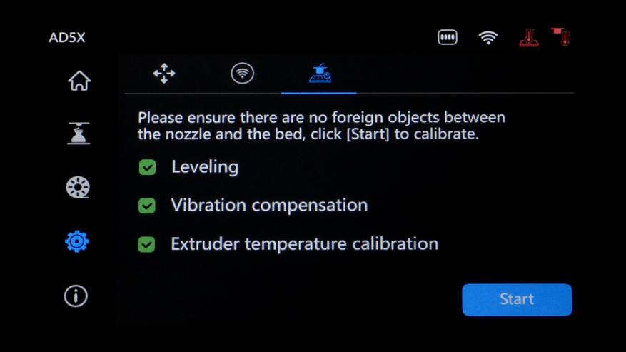 За это время с помощью тензодатчиков снимется карта стола по 25 точкам, пройдет вибротест (Input Shaping) и PID калибровка температуры.
