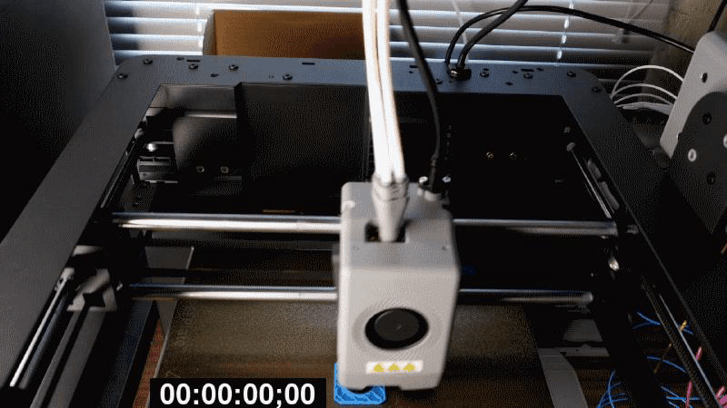 Для выделения перехода использовал пластик разного цвета. Примечательно, что процесс не прерывается если модуль обнаруживает, что филамент в нем закончился и только после срабатывания датчика прутка в экструдере происходит дозаправка. За счет этого отходов получается минимум.