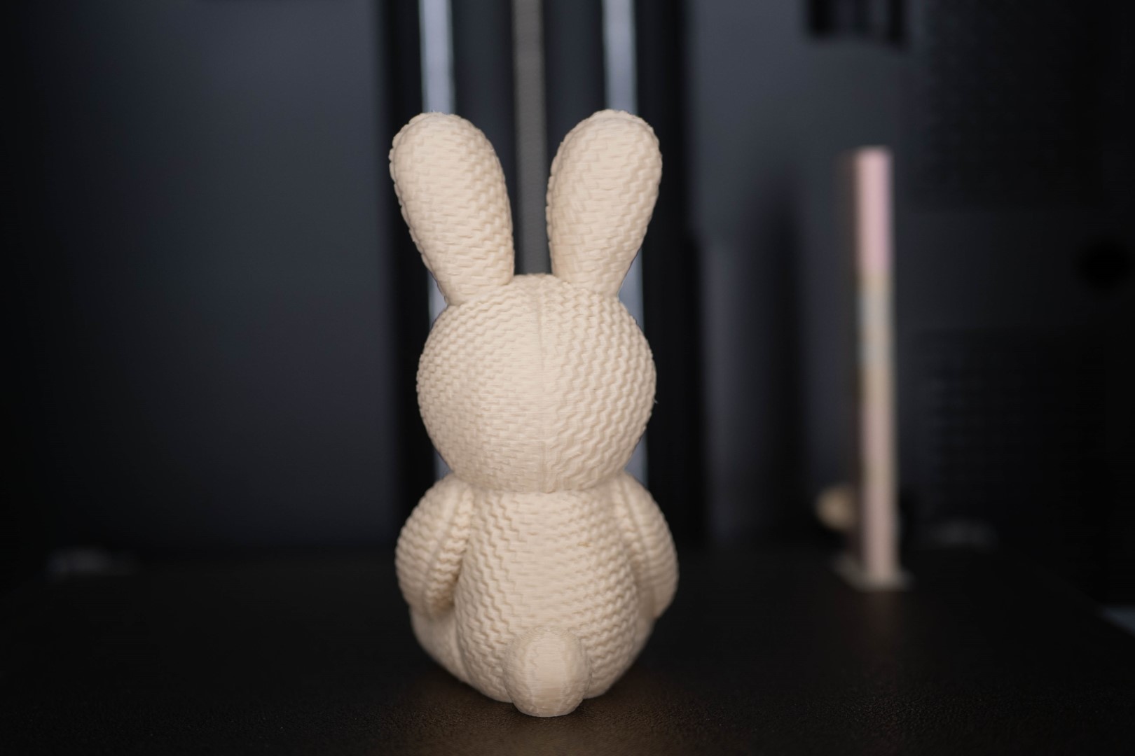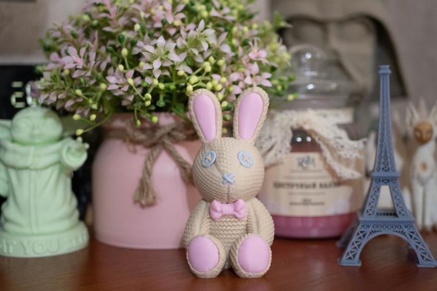 Печатал по просьбе жены, на полке заяц смотрится очень органично рядом с остальными розовыми штуковинами.