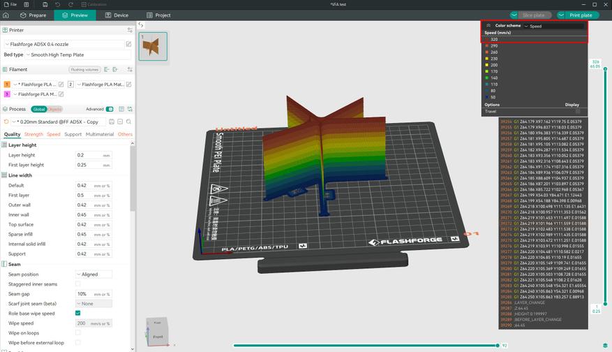 Вторым тестом решил прогнать VFA, он покажет рябь на разных скоростях, заодно и до максимума разогнать можно. У меня получилось 320мм/с, что соответствует расходу в 23-24 мм³/с.