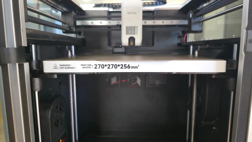 QIDI Q2 представляет собой закрытый 3D-принтер формата CoreXY, рассчитанный на широкий спектр материалов. Основой служит металлический каркас с жесткой кинематикой, рабочая область имеет размеры 270х270х256 мм. Для поддержания стабильных условий внутри камеры предусмотрен отдельный нагреватель, способный поднимать температуру до 60 °C. Это позволяет работать с пластиками, склонными к короблению, и удерживать равномерный тепловой режим при длительной печати.