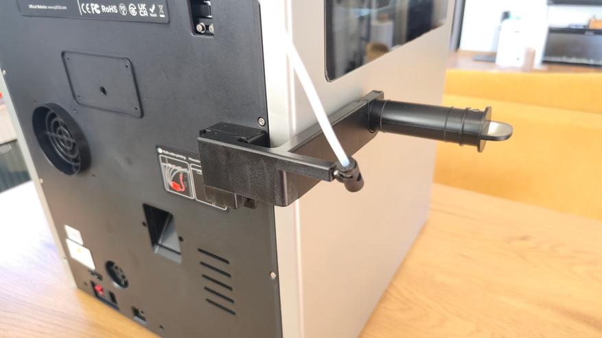 На левой поверхности расположен держатель для катушки филамента, причем он просто сюда выведен при помощи Z образного кронштейна, фиксатор расположен на тыльной поверхности. Также на этой поверхности расположен ревизиционное окошко. Правая панель полностью повторяет левую.