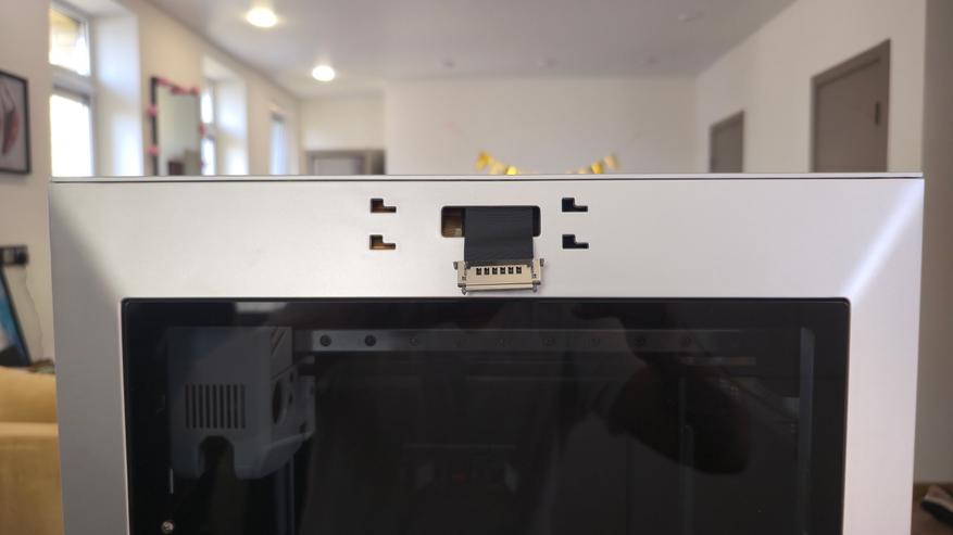 Освещение внутри обеспечивается светодиодной подсветкой, закрепленной в верхней части камеры. Свет распределяется достаточно равномерно и позволяет следить за процессом печати. В углу также размещена встроенная камера, которая используется для наблюдения и записи.