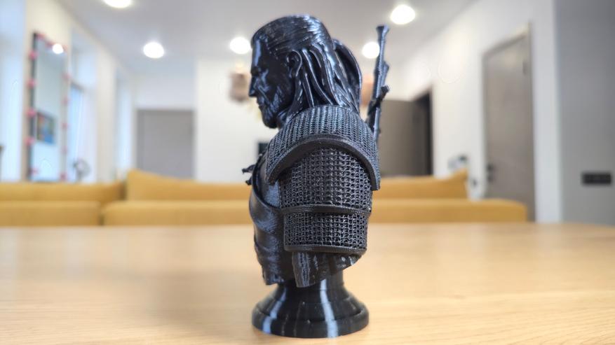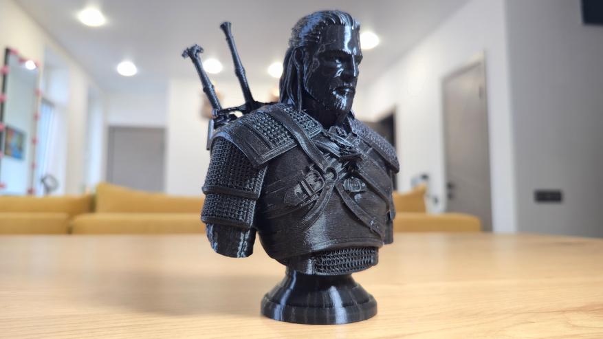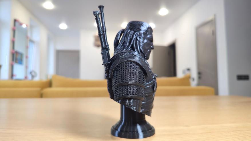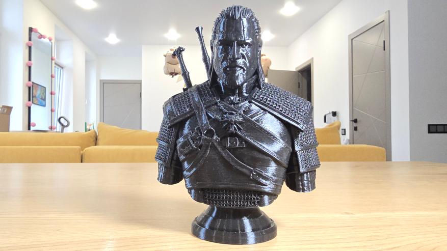 Отдельно я сделал еще один цикл печати на объемной модели фигурки ведьмака. На таких примерах лучше всего проявляется реальное качество устройства, так как здесь много сложных поверхностей, мелких элементов и перепадов высоты.