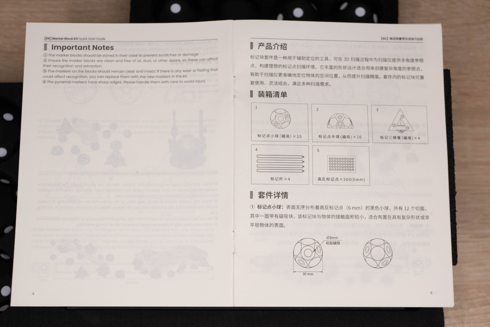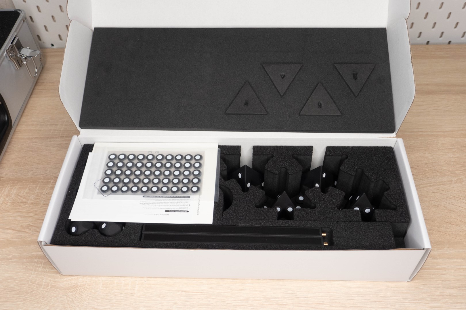 У меня расширенная версия, поэтому помимо большой коробки со сканером, в картонной упаковке была еще одна с дополнительными маркерами. Основной комплект находится в качественно сделанном кейсе, выглядит дорого.