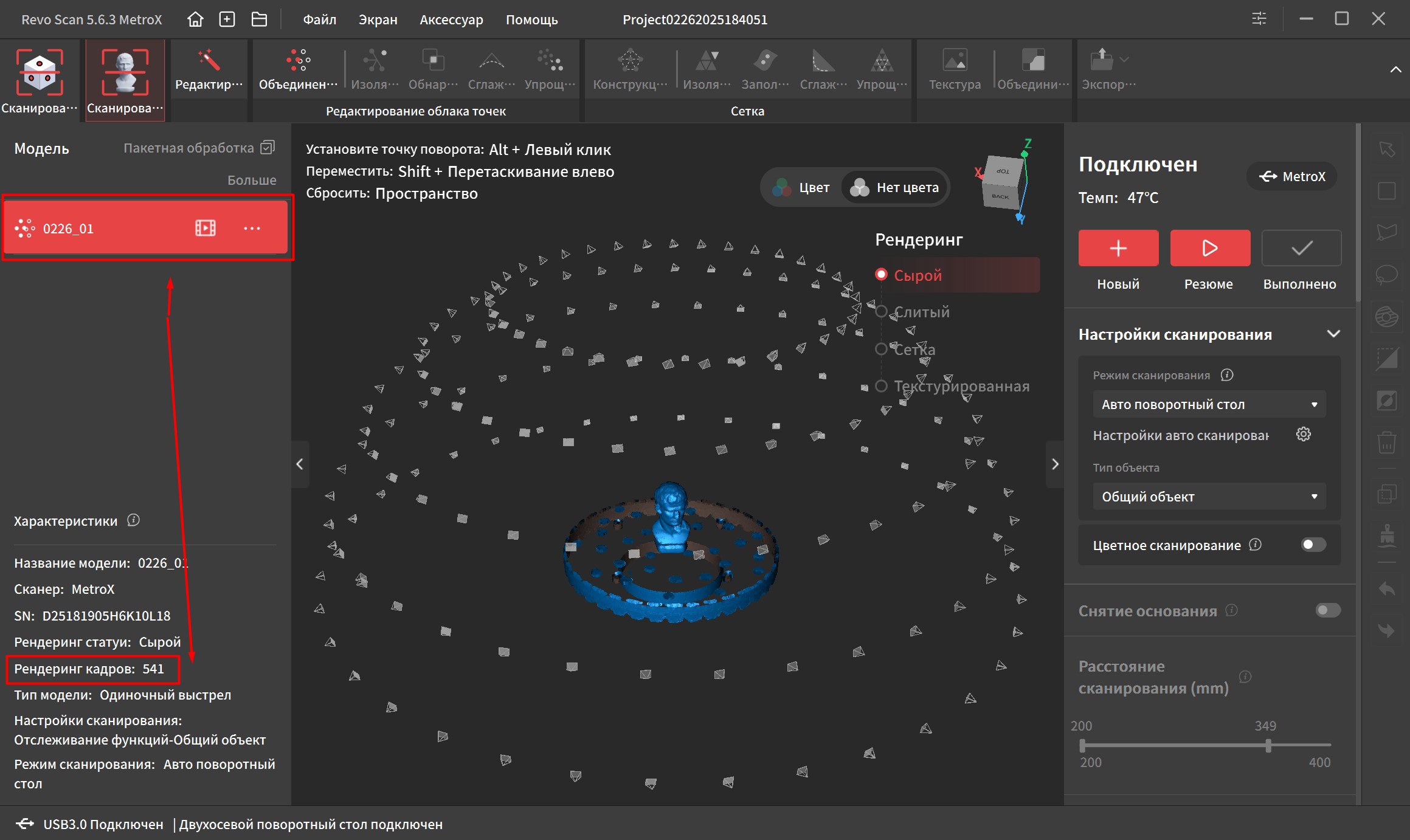 В этом примере бюст считывался с 5 разных ракурсов и был сделан всего 541 кадр.