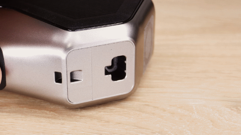 В основании есть прорезиненные ножки, обеспечивающие устойчивость во время работы. Разъем питания расположен сзади, поставляется с блоком 12В 2А. Также есть удобные переходники для разных типов розеток.