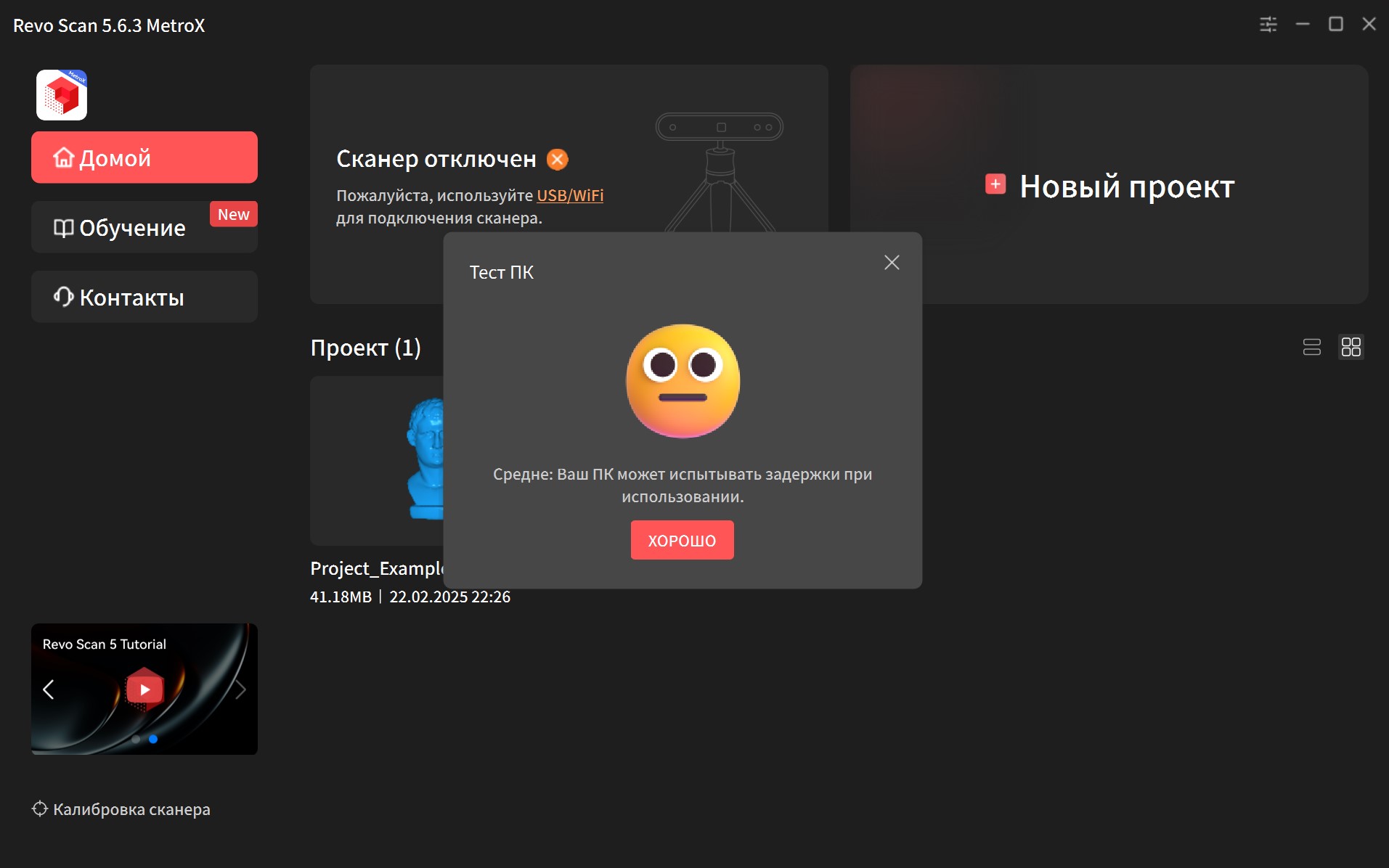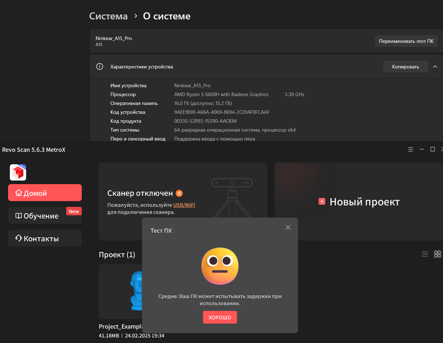 Для новой модели сканера нужно скачать ответвление Revo Scan 5 MetroX. Оно выглядит как и стандартная версия, но немного расширили настройки и добавлен тест производительности ПК. Мой старичок его не провалил, показав среднюю производительность.