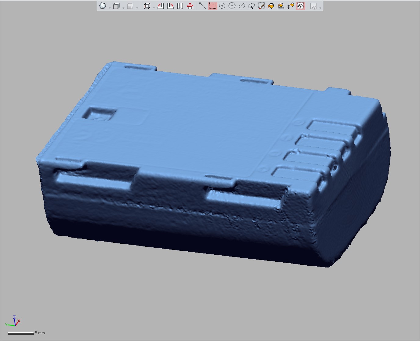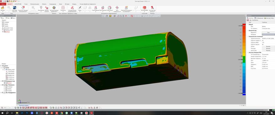 Прогнал пару кругов в первом режиме, убрал лишнее и натянул сетку. В качестве детали для обратного проектирования или сборки пойдет, но участков пропущено много. Обратил внимание, что некоторые зоны блестят больше, видимо пальцами отполировались во время использования.