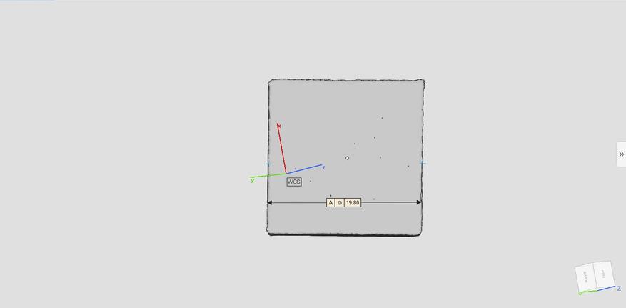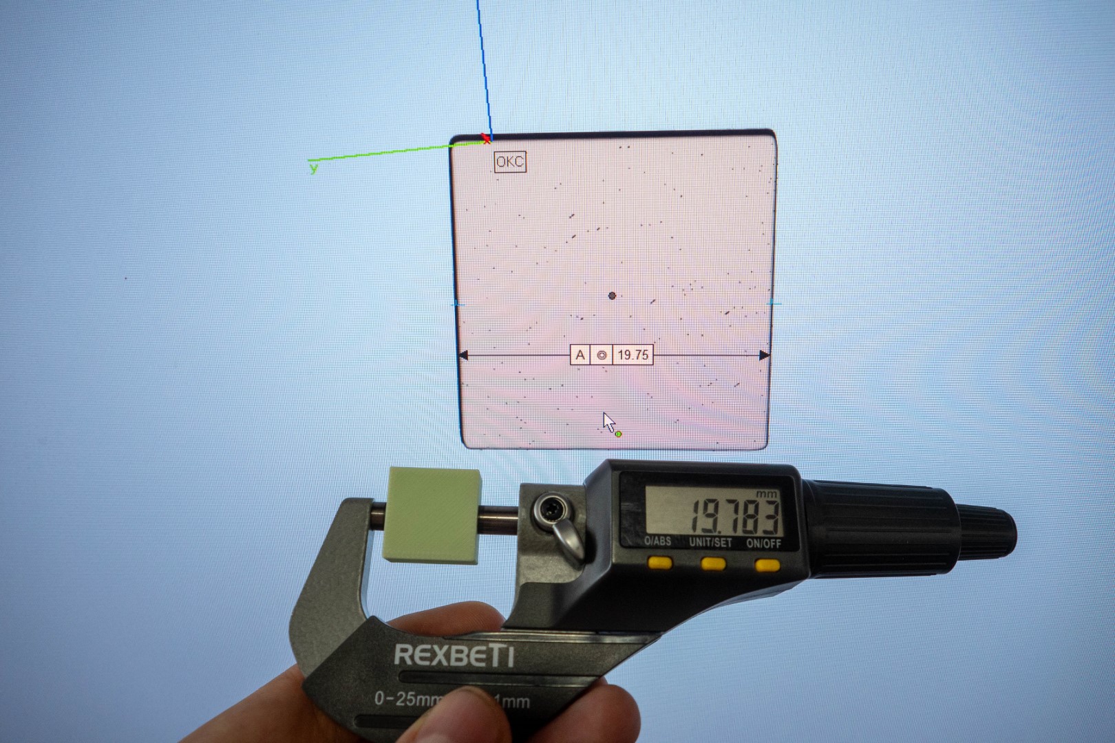 Точность в этом режиме также неплохая, напоминаю, длина стенки оригинала 19.783мм. Измерение модели производил с помощью инструмента «толщина стенки» в центре боковой грани, чтобы не мешал неровный край.