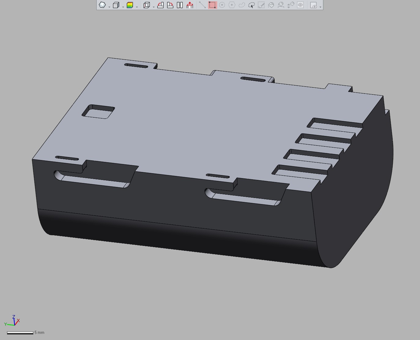 Я выгрузил сетку в формате STL, нарисовал цилиндр, скруглил ему верхнюю грань для удобства, соединил с основанием и булевыми операциями вычел модель зажигалки из основания, получив своеобразный слепок.
