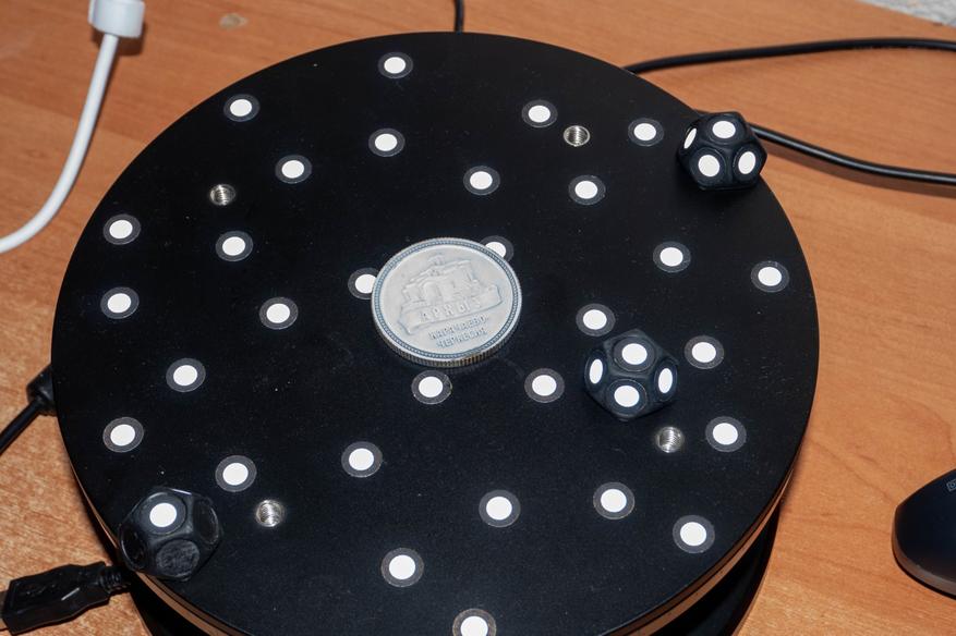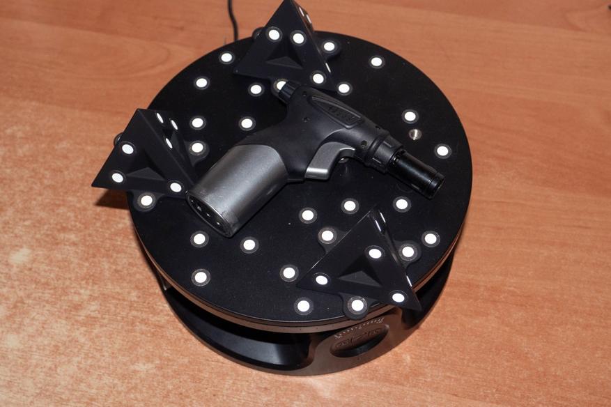 • В дополнительной комплектации есть несколько видов объемных маркеров и стоек для поворотного стола, что делает его немного дороже, но в этом случае не придется ничего дозаказывать или печатать для комфортного сканирования деталей среднего и крупного размера.