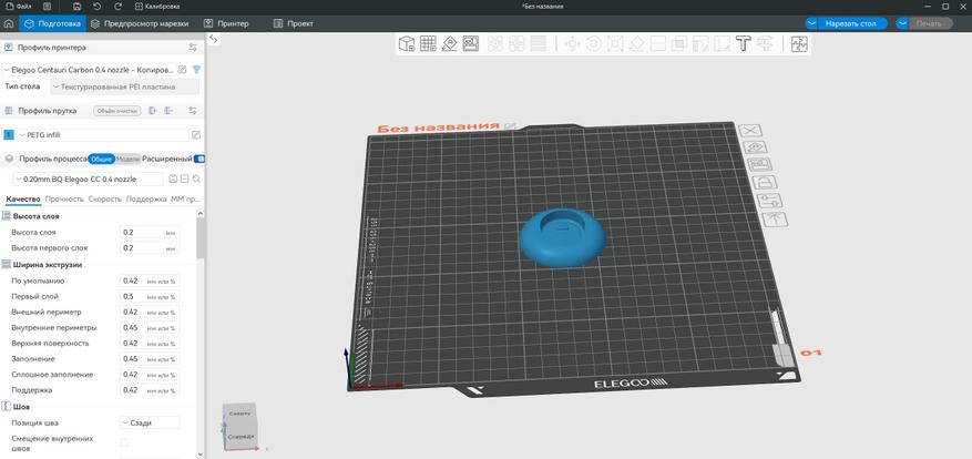 После импорта в слайсер увеличил размер на 1%, чтобы основание входило свободнее.