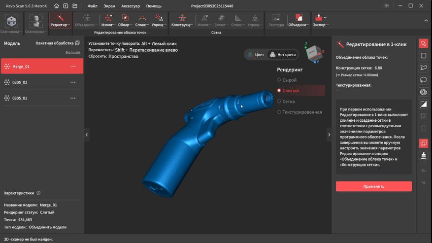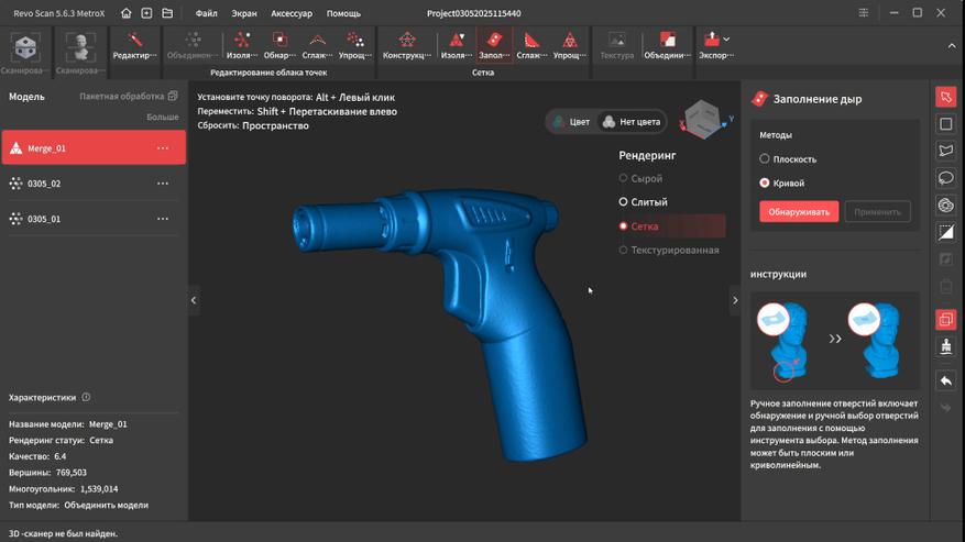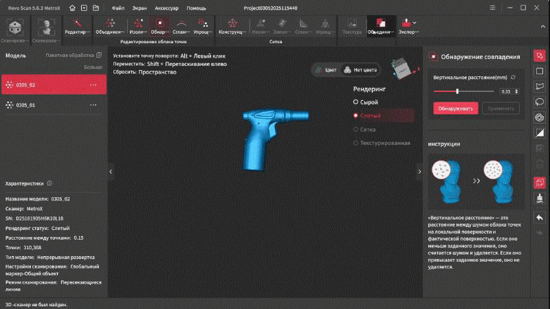 У Revopoint получилось создать действительно универсальную модель, которая способна с высокой точностью и детализацией сканировать практически любые типы поверхности без необходимости их матирования благодаря поддержки нескольких режимов работы: