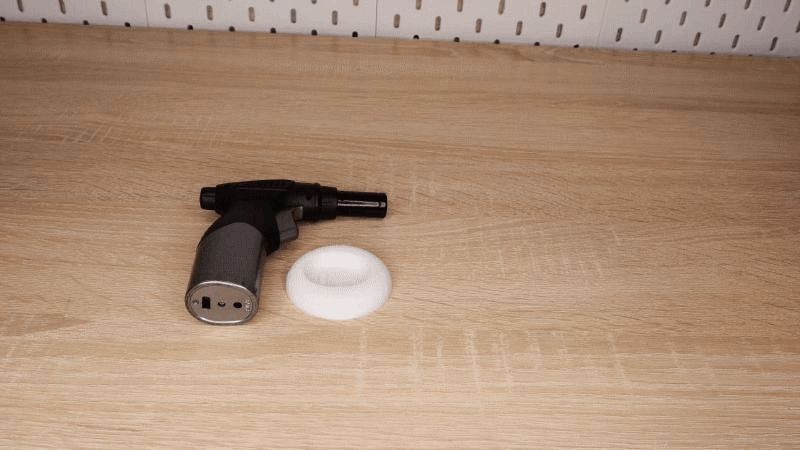 У меня есть маленькая газовая горелка, которой я в основном обжигаю «паутинку» у напечатанных моделей. Раньше в её основании была небольшая подставка, благодаря которой корпус можно было поставить вертикально. Но в какой-то момент фиксатор оторвало и она благополучно потерялась. У объекта есть черные глянцевые/матовые поверхности и светлые под металлик, а значит либо нужно заматировать его для проектора, либо использовать лазерные линии.