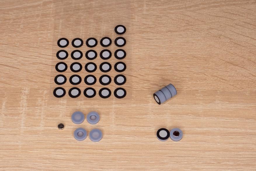 В стандартном комплекте их 500 штук, но по задумке они одноразовые, так что многие пользователи делают пластиковые варианты для многократного применения. Я спроектировал и напечатал корпус с минимально возможным размером под комплектные наклейки и магниты 5х2 миллиметра. Скачать модель можно тут.