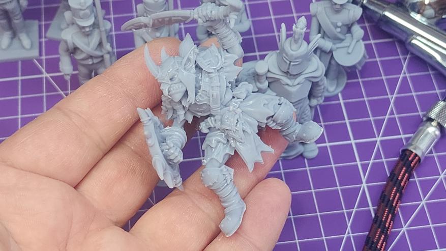 Не секрет, что миниатюры имеют высокую детализацию — зачастую важны и текстуры, и прорисовки лиц/мордочек монстров, а также элементы дизайна (шрамы, оружие, декор, текстуры). Так что одним из основных требований к подобной печати является точность воспроизведения моделей. Именно от точности и разрешения печати зависит проработка мельчайших деталей: черт лица персонажа, застежек на одежде, узоров на доспехах или текстуры кожи монстра. Фотополимерный принтер Elegoo Saturn 4 Ultra с его высоким разрешением (у меня версия 12К, есть версия 16К — это «пиксели» до 24 микрон) вполне подходит для этих задач, печатая модели, не уступающие по качеству литым миниатюрам из коммерческих наборов.