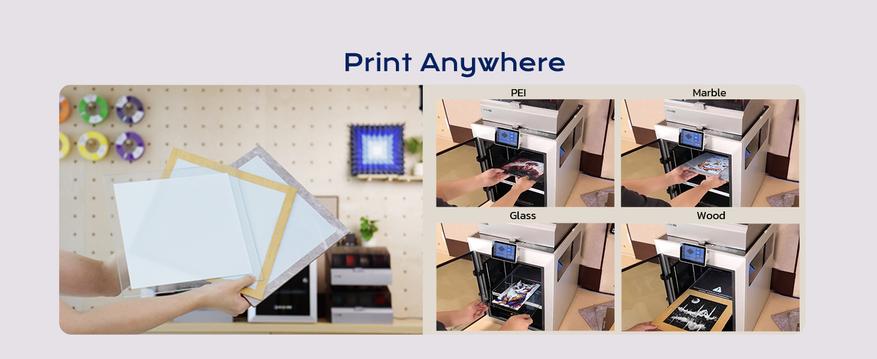Принтер оснащен рабочей камерой размером 270 x 270 x 256 мм с функцией нагрева до 65 градусов Цельсия. Закрытая конструкция камеры позволяет поддерживать стабильную температуру во время печати, что особенно важно при работе с техническими пластиками. Устройство совместимо с филаментами PLA, ABS, PETG и композитными материалами с углеродным волокном.