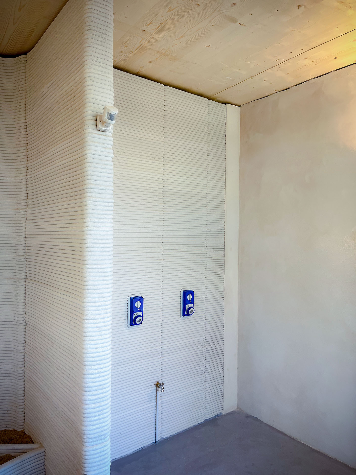 Конструкция предназначена для размещения туалетов и зоны отдыха сотрудников таможни. Все несущие стены здания были напечатаны автоматизированным способом без использования опалубки. Весь проект от первого печатного слоя до момента сдачи объекта в эксплуатацию занял 19 дней, из которых семь дней ушло непосредственно на печать конструкции.