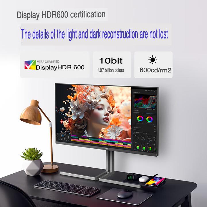 Сертификация VESA DisplayHDR 600 обеспечивает контрастность 2000:1 и расширенный динамический диапазон, а двойной сертификат TÜV Rheinland подтверждает снижение синего излучения на аппаратном уровне без искажения цветопередачи. Функция автоматического поворота экрана упрощает работу в портретной ориентации, а 6-осевая ручная настройка оттенков позволяет точно соответствовать бренд-гайдам.