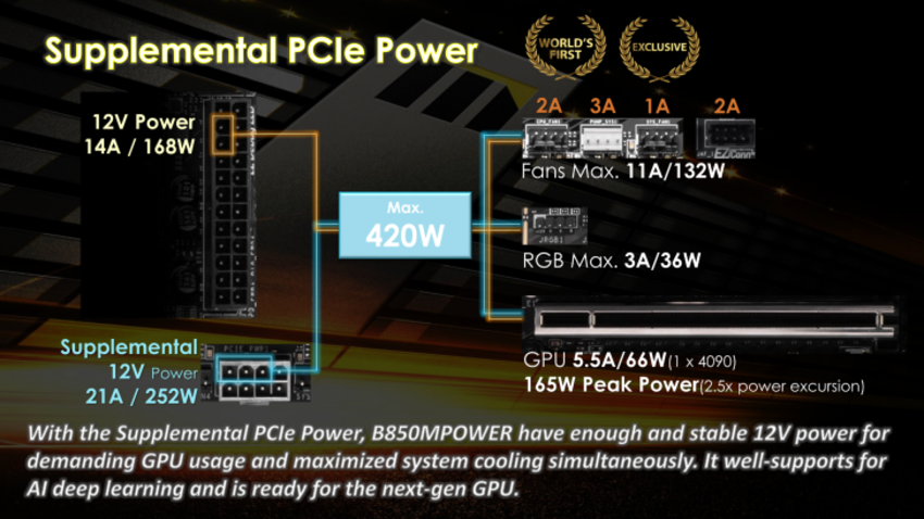 ASUS делится своими достижениями в области отказа от разъемов, демонстрируя, что текущий стандарт PCIe Gen5 не претерпел значительных изменений в управлении энергопотреблением. Стандартный слот PCIe по-прежнему обеспечивает максимальную мощность 75 Вт, что недостаточно для большинства современных видеокарт. Хотя некоторые бюджетные модели имеют TDP ниже 75 Вт, даже такие решения начального уровня, как RTX 5050, могут потреблять более 100 Вт при пиковых нагрузках. Следовательно, для обеспечения стабильной работы требуется дополнительное питание.
