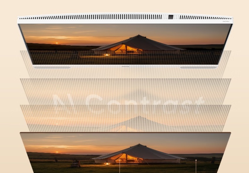 Опция AI Picture Optimization Technology, встроенная в монитор, применяет алгоритмы в реальном времени для настройки яркости и контраста в зависимости от изображения на экране, что позволяет сделать тёмные сцены более ясными и избежать излишней яркости в светлых зонах. Поддерживается режим M-Book, что облегчает интеграцию с экранами MacBook. Монитор оснащен двумя динамиками TreVolo и предлагает шесть режимов звука. Настраиваемый эквалайзер позволяет индивидуализировать звуковые предпочтения пользователей.