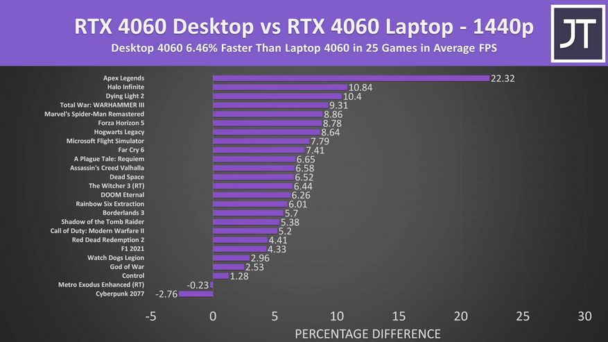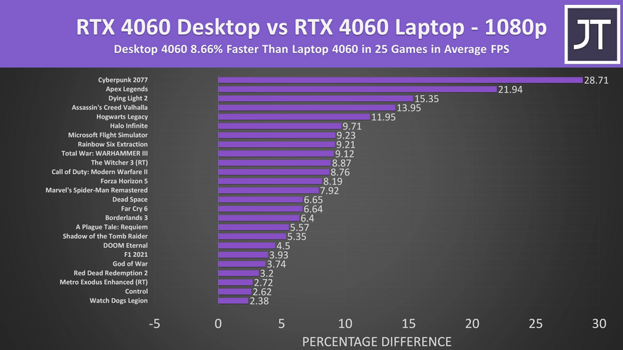 Блогер сравнил производительность мобильной и десктопной Nvidia RTX 4060 в 25 играх