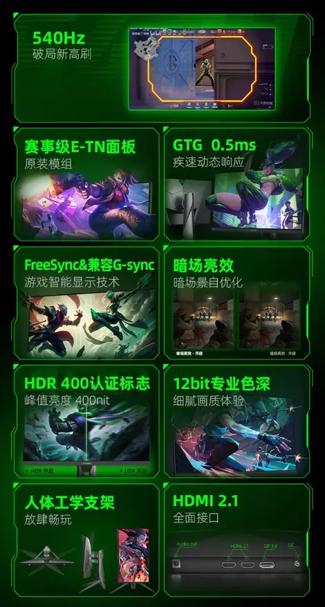 Кроме того, как указано в описании, этот монитор оснащен передовой технологией игрового дисплея, поддерживающей технологии AMD FreeSync и NVIDIA G-Sync. В монитор встроены такие игровые функции, как улучшение темного поля, перекрестие, таймеры, а также 8 различных сюжетных режимов.