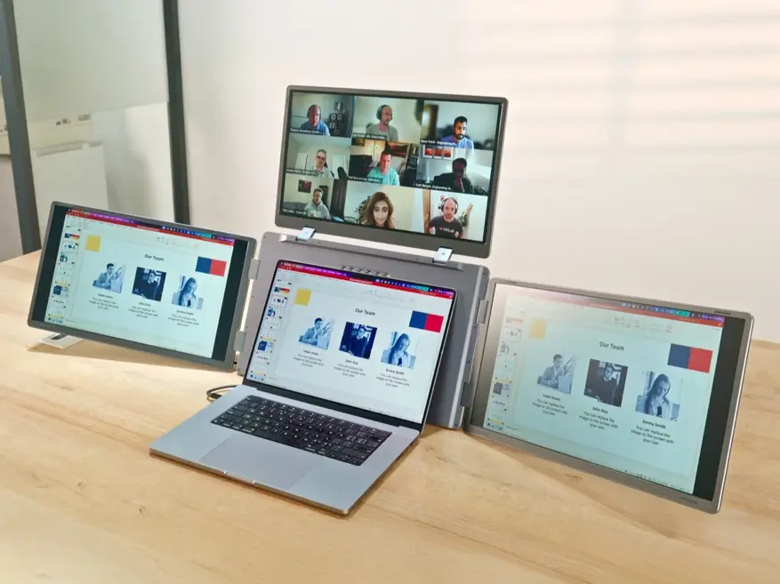 Компания INVZI выпустила портативное устройство MagHub Quad Max, объединяющее три складных дисплея диагональю 18,5 дюйма в одном корпусе. Устройство крепится к ноутбуку и превращает его в рабочую станцию с четырьмя экранами, включая собственный дисплей ноутбука. Суммарная диагональ трёх дополнительных панелей составляет 55,5 дюйма.