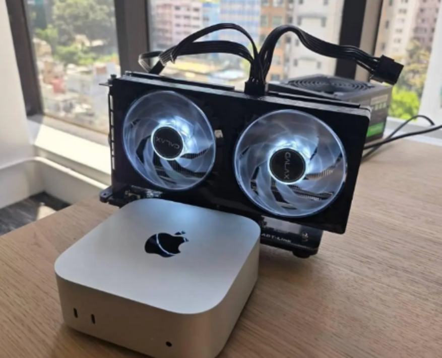 Компания TinyCorp, специализирующаяся на решениях для искусственного интеллекта, сообщила о создании адаптера, позволяющего подключать дискретные видеокарты к компьютерам Mac на базе фирменных чипов Apple. Прототип уже протестирован: к Mac mini успешно подключили графический ускоритель GeForce RTX 5060 производства Galax. Ожидается, что финальная версия устройства появится в продаже во втором квартале 2026 года.