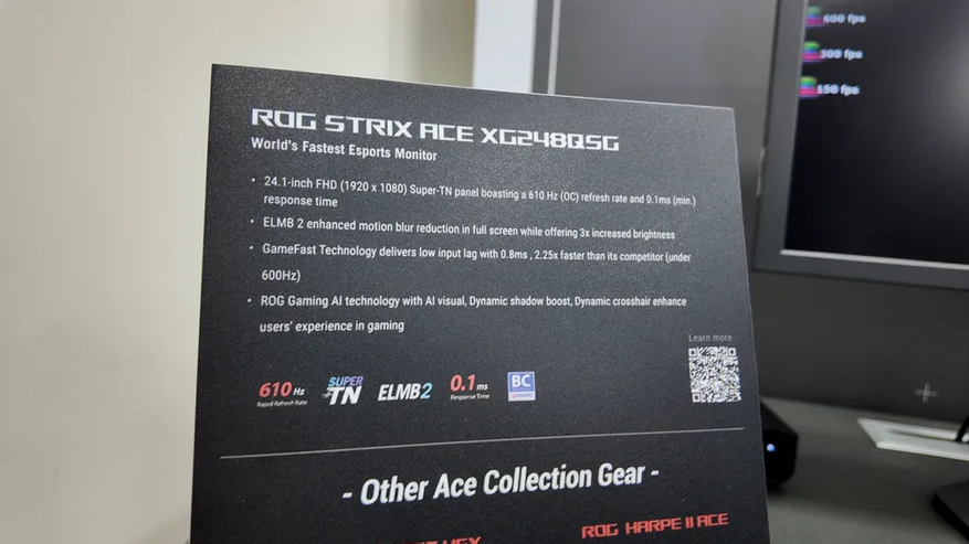 Компания Asus только что представила монитор с частотой обновления 610 Гц. Справедливости ради, профессиональные геймеры будут ставить скорость выше красивых визуальных эффектов, если хотят выжимать максимум эффективности от монитора, поэтому данное предложение на рынке предлагает свое решения этого вопроса. Демонстрируемый на первом этаже Computex 2025 в Тайбэе, Тайвань, новый ROG Strix Ace XG248QSG от Asus — это 24,1-дюймовый FHD-монитор с вышеупомянутой частотой обновления 610 Гц (в режиме OC) и временем отклика 0,1 мс. Он также обеспечивает задержку ввода всего в 0,8 миллисекунд.