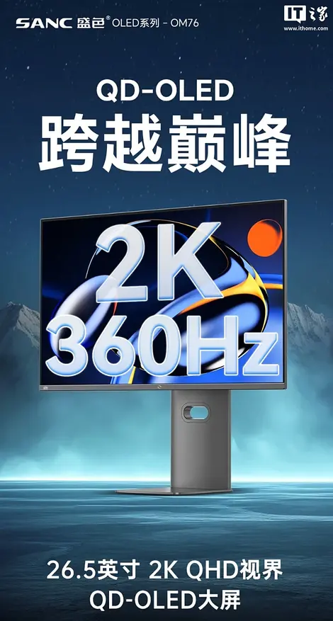 Китайский производитель Shengse анонсировал новый игровой монитор OM76 с диагональю 26,5 дюйма. Устройство построено на базе QD-OLED панели производства Samsung Display, которая обеспечивает разрешение 2560x1440 пикселей при частоте обновления 360 Гц.