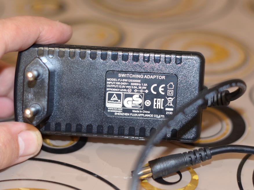 Для подключения к электросети необходимо использовать комплектный блок питания 3А, 36W, который так же оснащен фильтром ЭМП помех. Длина кабеля около двух метров.