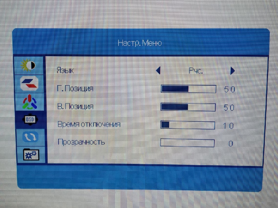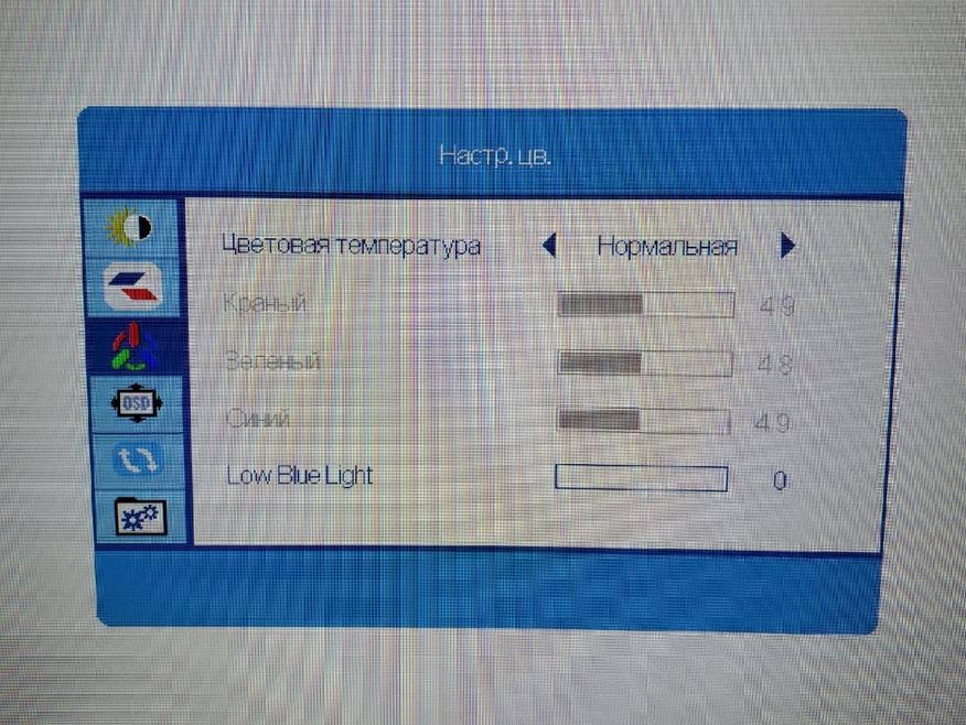 В правом нижнем углу находится световой индикатор питания, который сигнализирует, синим цветом о том, что монитор включен и работает, при энергосберегающем режиме светодиод начинает мигать красным цветом, когда монитор уходит в режим ожидания индикации не происходит. Режим ожидания можно отключить в настройках.