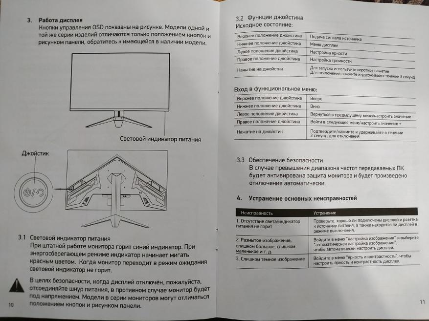 - Нажатие на джойстик включает монитор, для отключения монитора необходимо нажать и удерживать джойстик в течение трех секунд.