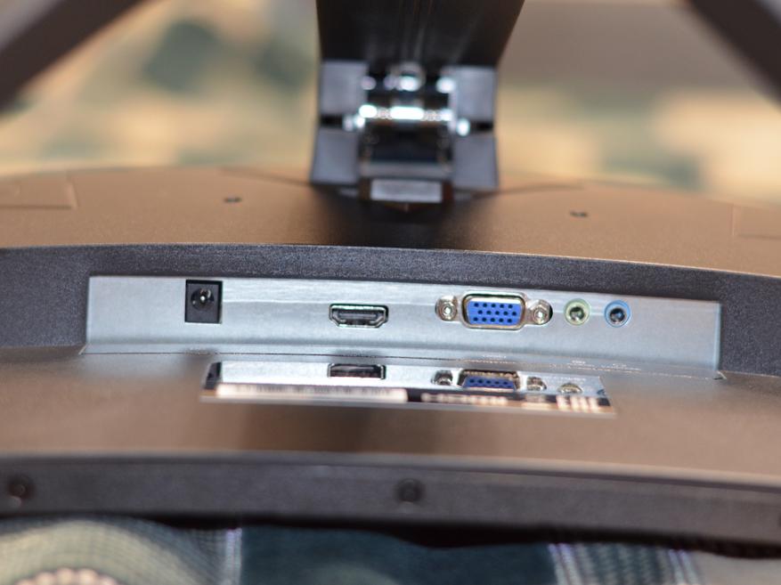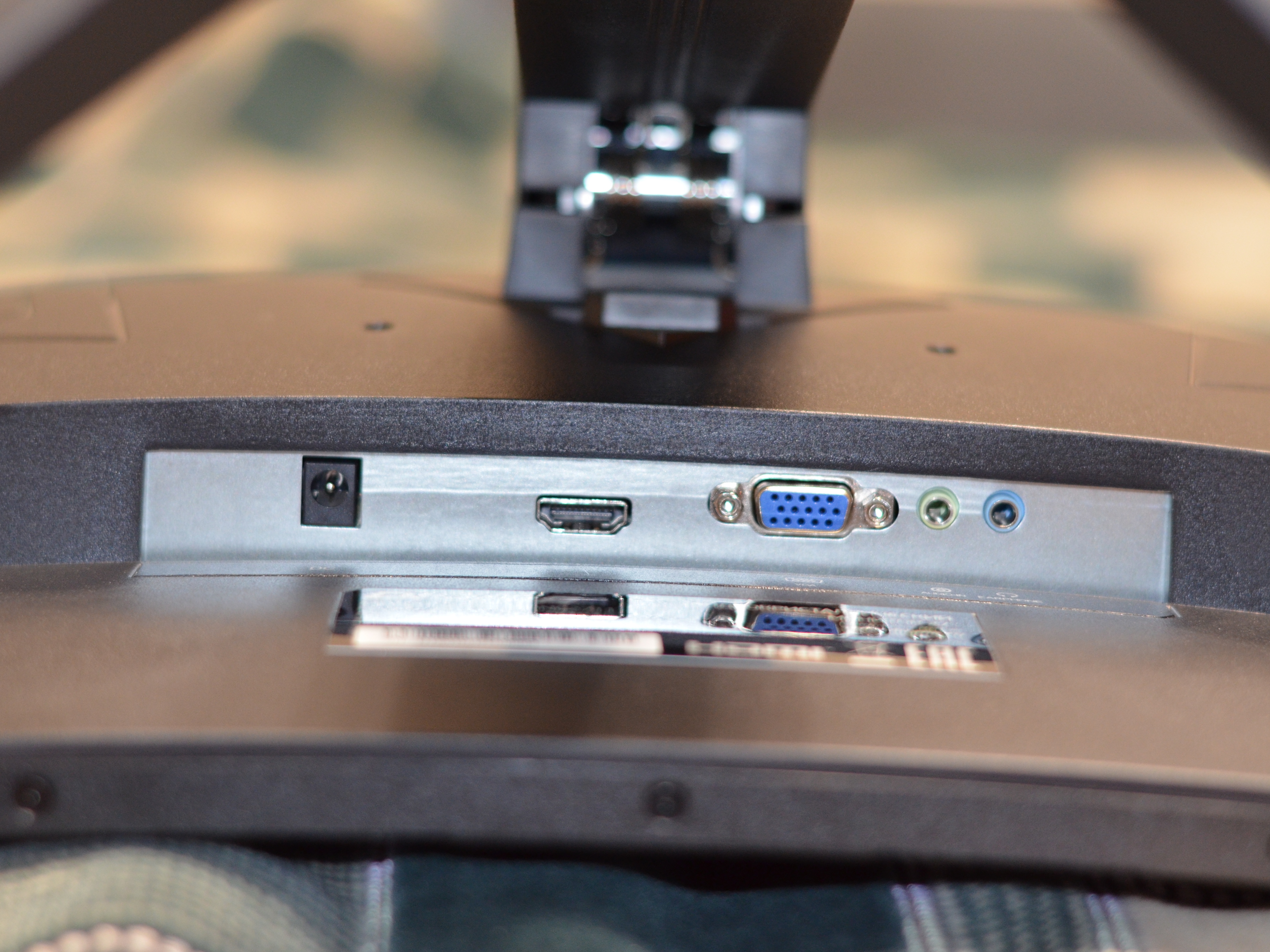 Контакты для подключения располагаются на нижней части задней стенки направлением вниз. Из портов тут присутствует порт для подключения питания, два порта для подключения к источнику изображения HDMI\VGA, порт для подключения динамика и порт для наушников. При первом подключении монитора к ПК звук автоматически переключается на выходы монитора, необходимо изменить это в настройках ПК если хотите, что бы звук и дальше шел от ваших колонок.
