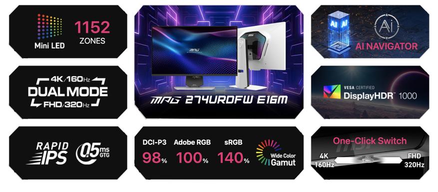 MSI начала продажи игрового монитора MPG 274URDFW E16M с Mini LED-подсветкой
