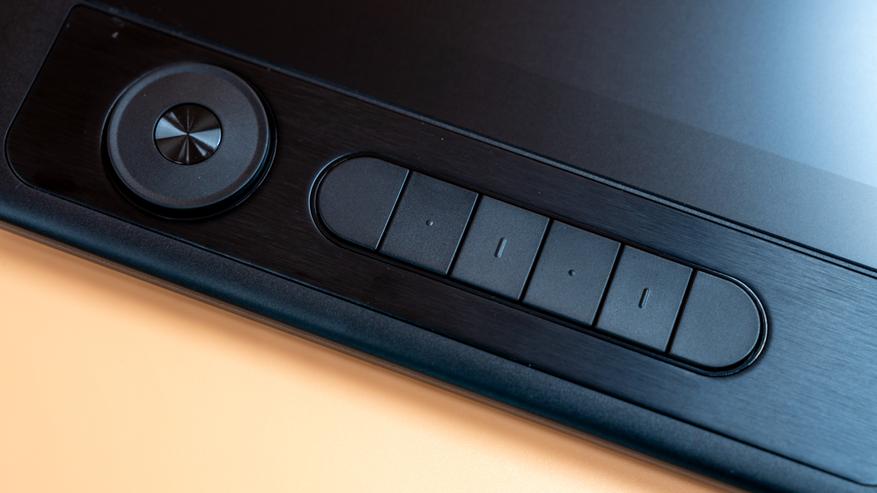 На боковой панели расположены шесть программируемых горячих клавиш и энкодер. Кнопки имеют четкое тактильное срабатывание с умеренным усилием нажатия, а вращение диска сопровождается слышимым щелчком.